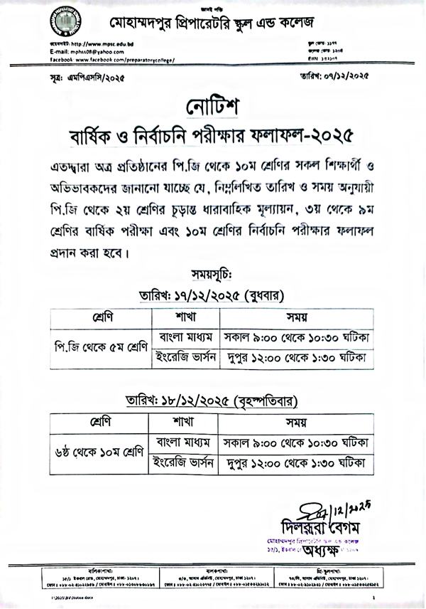 ২০২৫ বার্ষিক ও নির্বাচনি পরীক্ষার ফলাফলের সময়সূচী